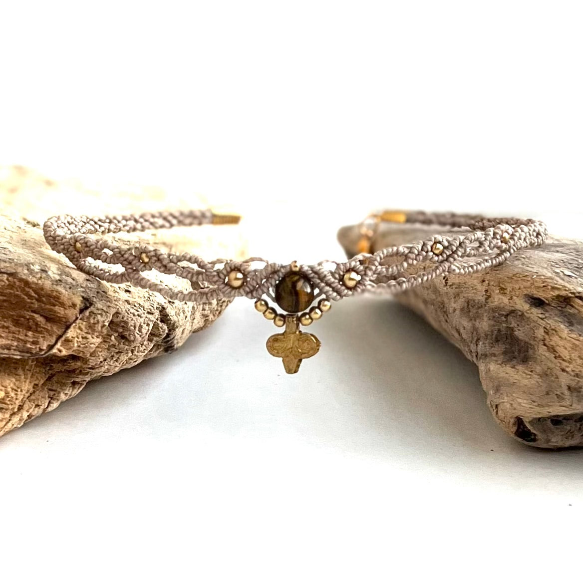 Makrame ogrlica je ročno izdelana iz visokokakovostnih vrvic, ki so izjemno trpežne. Vrvica je vodoodporna, zato je ogrlica primerna za vsakodnevno nošenje. Barve so obstojne in ohranjajo svojo živahnost, saj ne bledijo ob izpostavljenosti soncu.