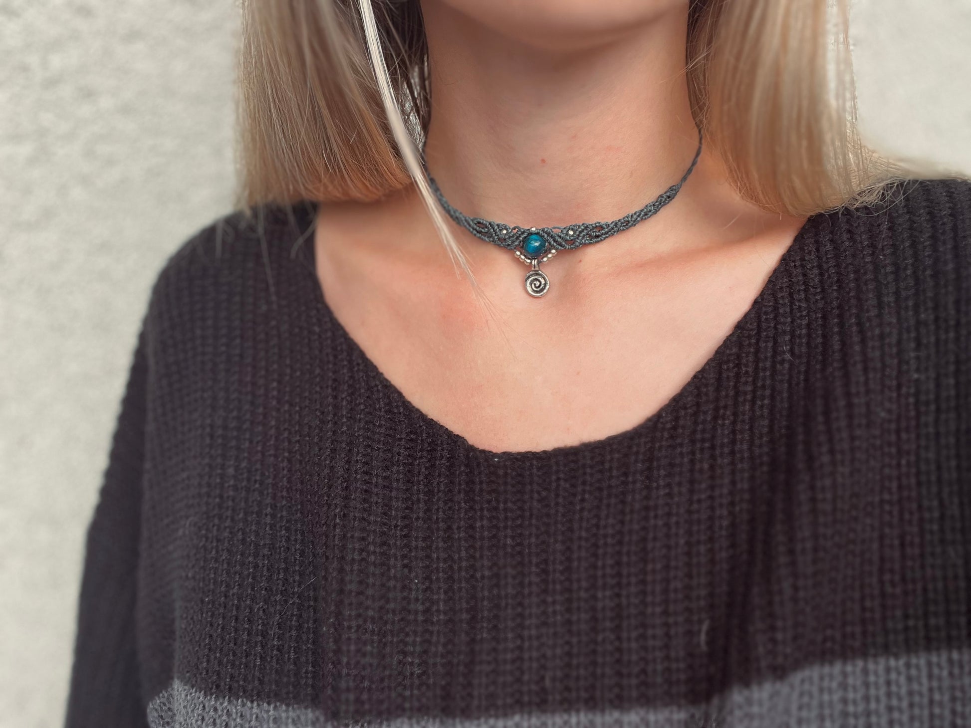 Makrame ogrlica je ročno izdelana iz visokokakovostnih vrvic, ki so izjemno trpežne. Vrvica je vodoodporna, zato je ogrlica primerna za vsakodnevno nošenje. Barve so obstojne in ohranjajo svojo živahnost, saj ne bledijo ob izpostavljenosti soncu. Ogrlico lahko nosite kot choker ali nižje na vratu po vaši željeni dolžini.