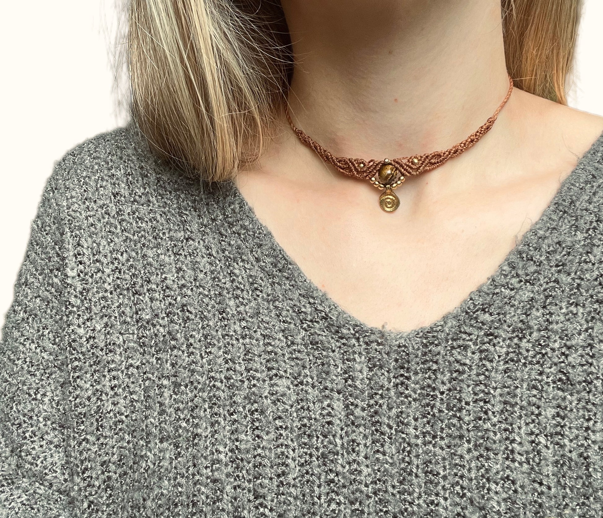 Makrame ogrlica je ročno izdelana iz visokokakovostnih vrvic, ki so izjemno trpežne. Vrvica je vodoodporna, zato je ogrlica primerna za vsakodnevno nošenje. Barve so obstojne in ohranjajo svojo živahnost. Ogrlico lahko nosite kot choker ali nižje na vratu po vaši željeni dolžini.