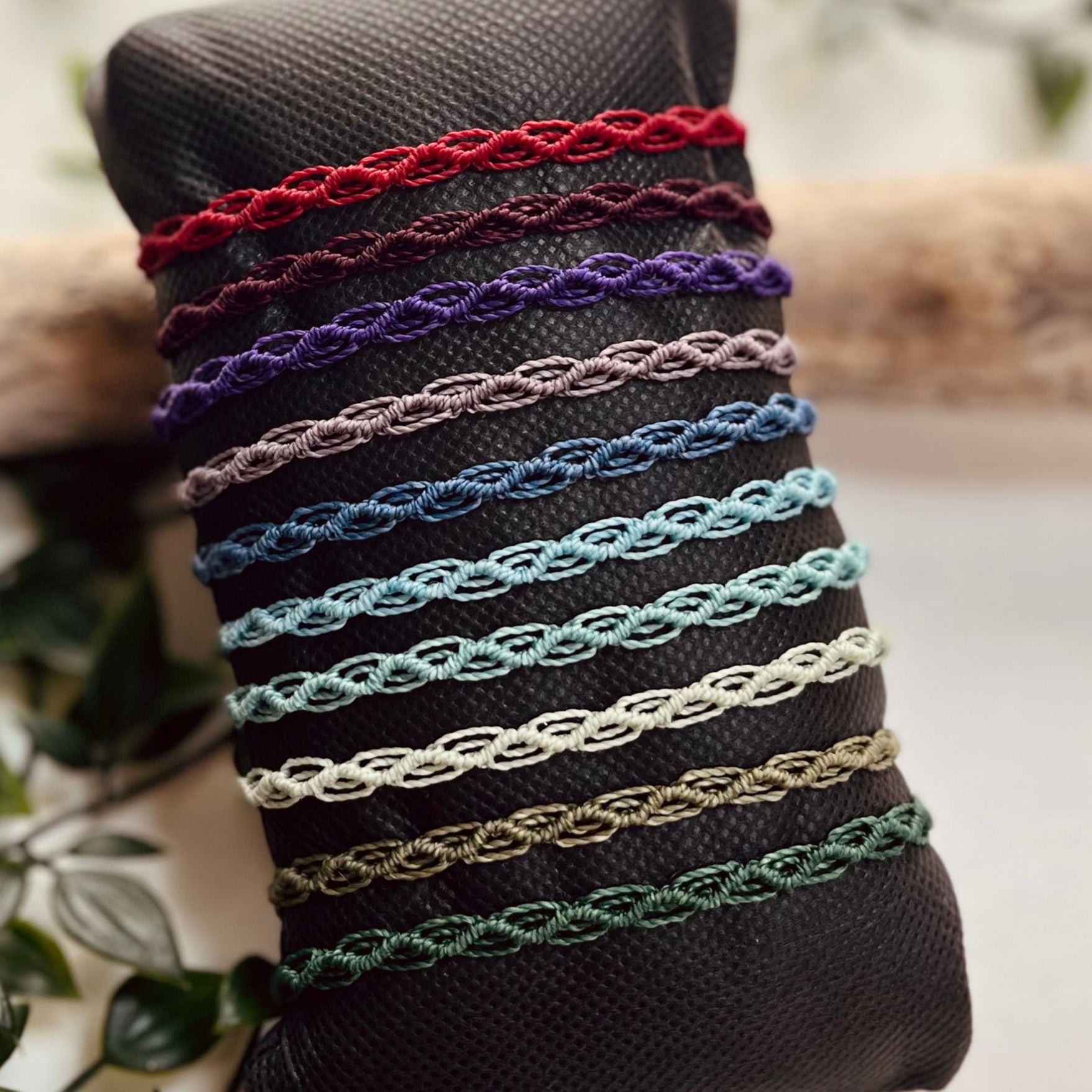 Makrame nagležnica je ročno izdelana iz visokokakovostnih vrvic, ki so izjemno trpežne in zasnovane za dolgotrajno uporabo. Vrvica je vodoodporna, zato je nagležnica primerna za vsakodnevno nošenje, tudi v vodi ali pri športnih aktivnostih. Barve so obstojne in ohranjajo svojo živahnost, saj ne bledijo ob izpostavljenosti soncu.